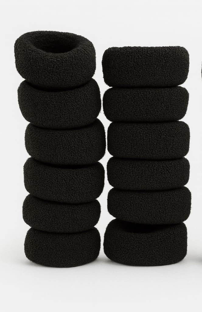 12 pc Premium Black Soft Hair Donut Bands – Extra Stretch, No Damage & All-Day Comfort